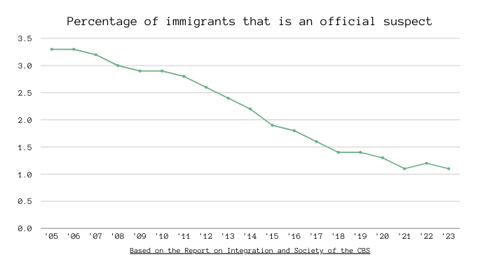 Refugees who are granted residence status are unlikely to commit crimes. In 2023, only 1.1% of immigrants were suspected of criminal activity. The Dutch government can deny an asylum seekers residence permit if they have committed a serious offence, which helps prevent dangerous criminals from getting Dutch residency. Additionally, the chance of asylum seekers committing crimes is closely linked to how likely they are to receive asylum. In other words, refugees who settle in the Netherlands are the least likely to commit crimes compared to other asylum seekers.